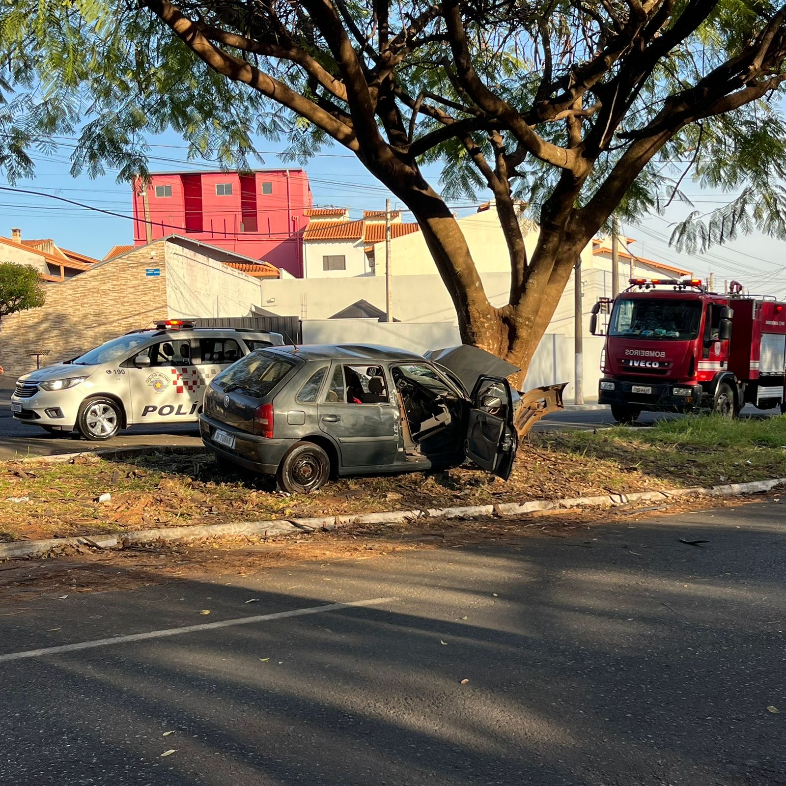 O veículo, um Volkswagen Gol, seguia no sentido bairro-centro quando o motorista perdeu o controle da direção, por causas ainda não esclarecidas. A colisão foi violenta.