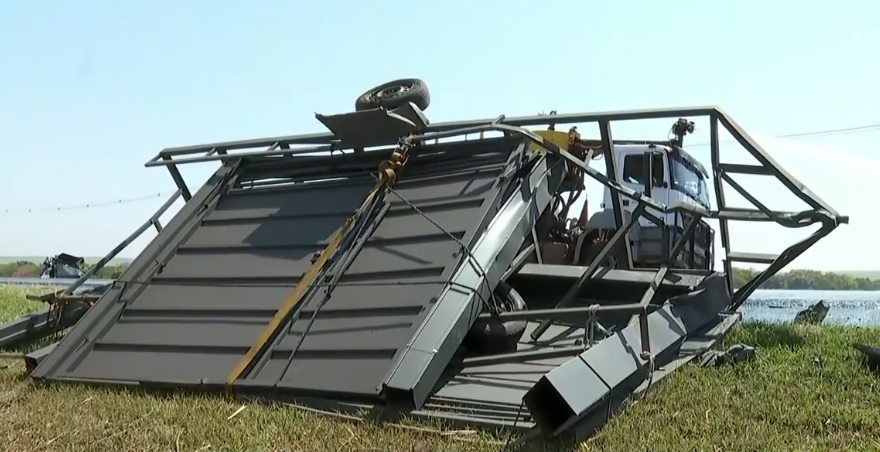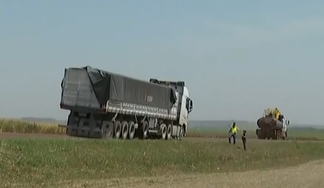Com o impacto entre os veículos, o portão que era transportado pela Paraty em um semirreboque foi lançado para o outro lado da pista. — Foto: Reprodução/EPTV Ribeirão Preto