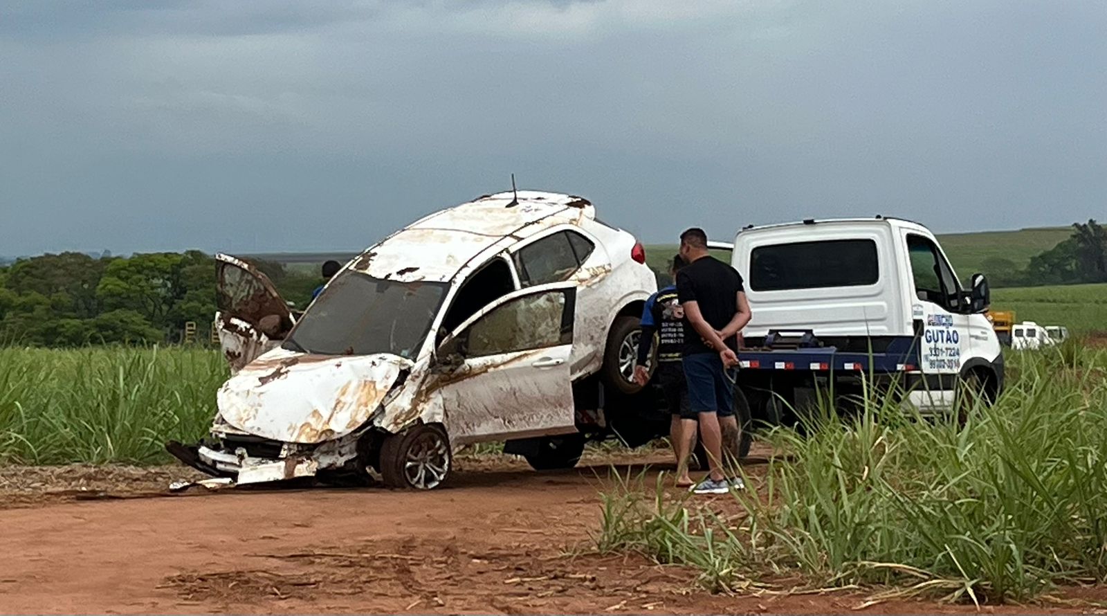 Um Fiat Argo capotou dentro de um bolsão de captação de água localizado em uma área de canavial, às margens da Vicinal Graciano da Ressureição Afonso, trecho que liga Araraquara ao distrito de Bueno de Andrada, próximo à linha férrea.