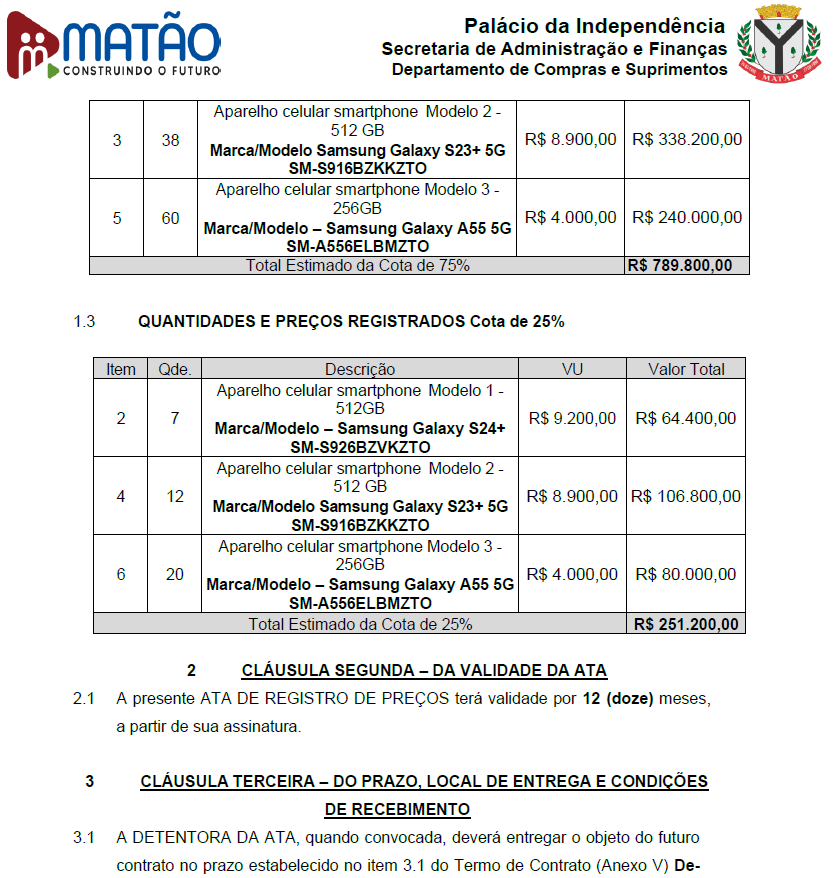 Confira abaixo um trecho da Ata de Registro de Preço: