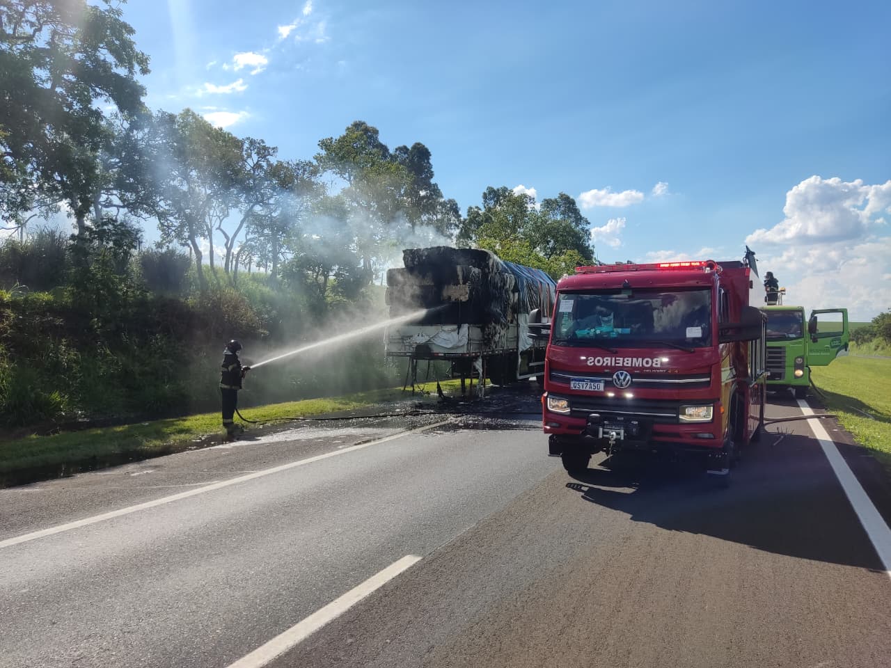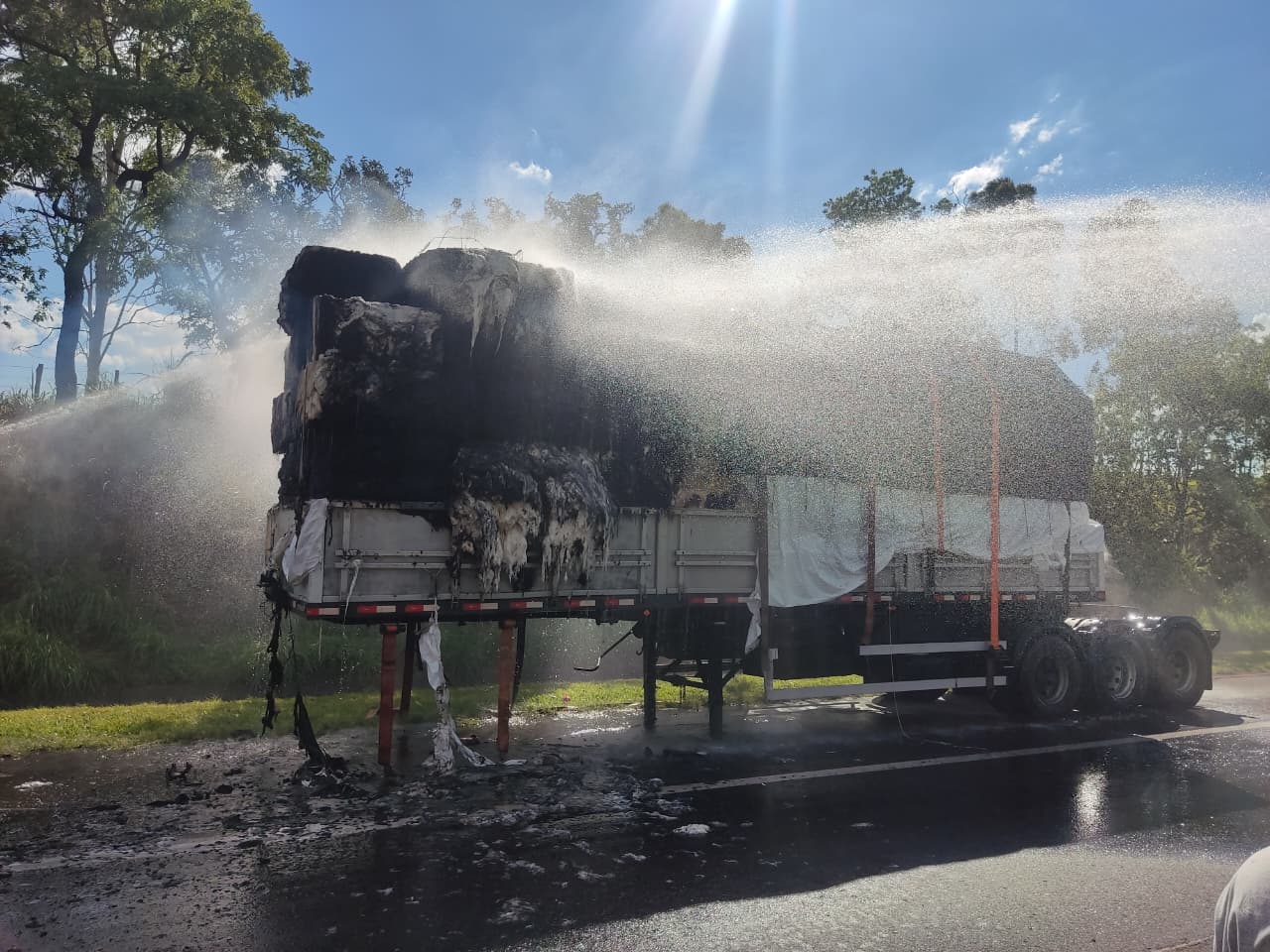Um caminhão carregado com algodão apresentou um princípio de incêndio na tarde desta sexta-feira (5), na rodovia Washington Luís (SP-310), na altura do km 293, em Matão.
