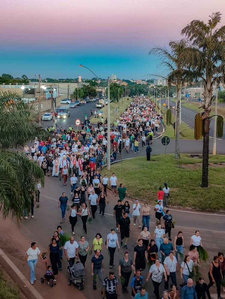 No último domingo (29), a cidade de Matão viveu mais uma edição da tradicional Caminhada da Fé, que neste ano chegou à sua 40ª realização. A procissão, conhecida como Procissão de Ramos, reuniu milhares de fiéis de diversas comunidades católicas do município em um momento de oração, devoção e reflexão.